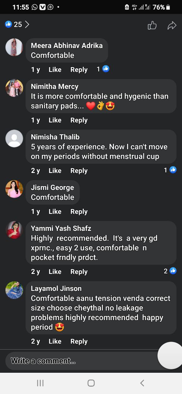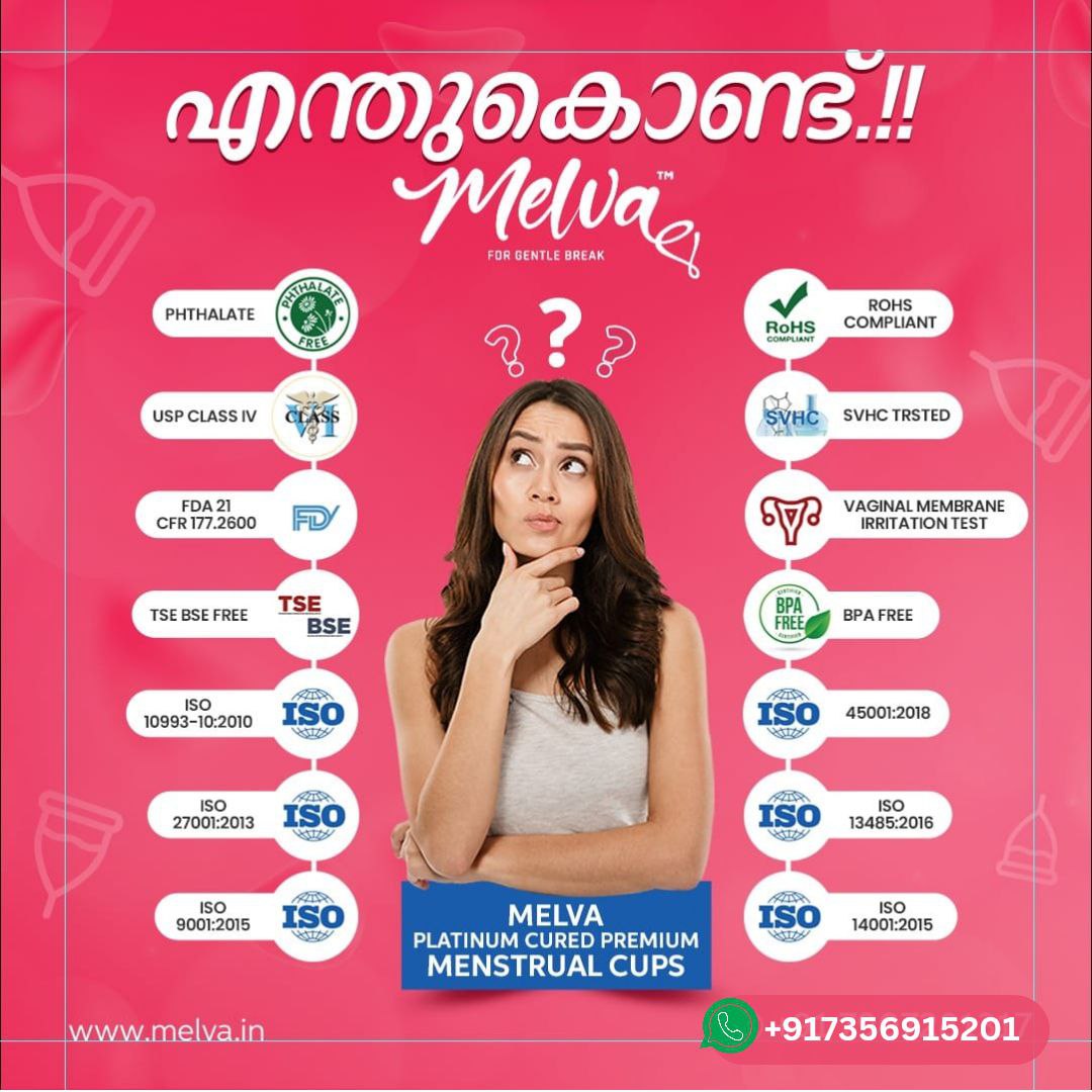 മെൽവയിലേക്ക് മാറണംനിങ്ങൾ എന്തുകൊണ്ട്? മെൽവ, 100% മെഡിക്കൽ ഗ്രേഡ് ലിക്വിഡ് സിലിക്കൺ അടങ്ങിയ പ്രീമിയം മെൻസ്ട്രൽ കപ്പാണ്, അത് വളരെ മൃദുവും പ്ലാറ്റിനം ഭേദമാക്കുന്നു. MELVA നിറമില്ലാത്തതും, മണമില്ലാത്തതും, ചൊറിച്ചിൽ ഇല്ലാത്തതും, ചുണങ്ങില്ലാത്തതും, രാസ രഹിതവുമാണ്. എന്തുകൊണ്ട് മെൽവ ഏറ്റവും സുരക്ഷിതമായ ആർത്തവ കപ്പായി മാറുന്നു..